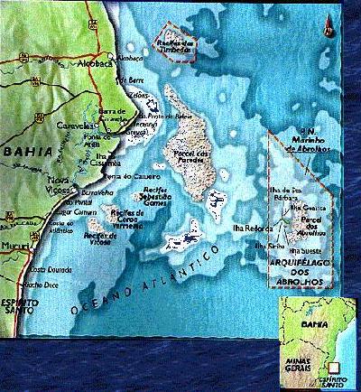 zien dat kennelijk het hele gebied met eilandjes en koraalriffen bedoeld werd tussen de Abrolhos archipel en de Braziliaanse kust.